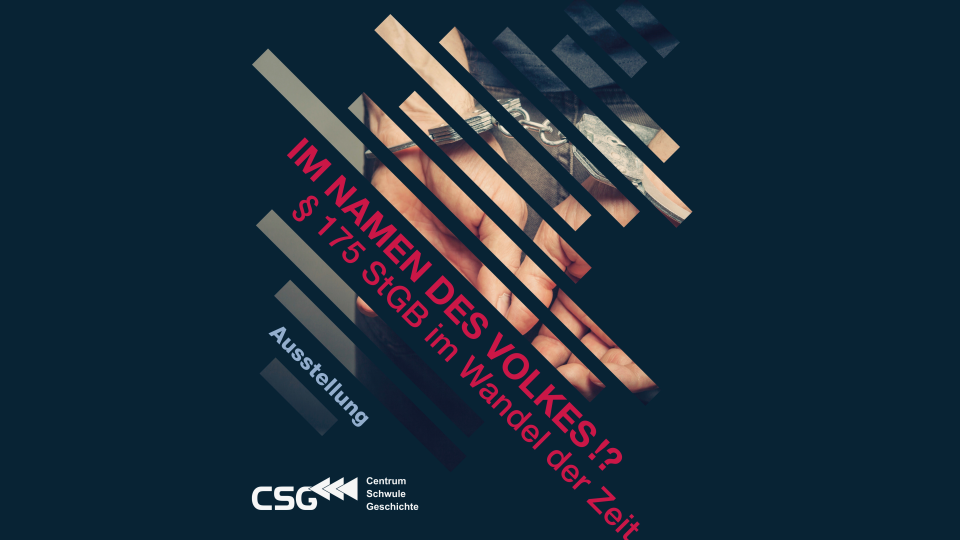 Die Wanderausstellung „Im Namen des Volkes!? – § 175 StGB im Wandel der Zeit“ wurde im Rahmen einer Förderung des Familienministeriums durch das Centrum Schwule Geschichte e.V. Köln (CSG) realisiert. Die Ausstellung skizziert die staatliche Verfolgung von der Spätantike über das Mittelalter, die Weimarer Republik, die Zeit des Nationalsozialismus bis in die Zeit der Bundesrepublik. Es ist ein Streifzug durch die Geschichte, der nachdenklich stimmt.